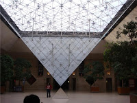 这个巴黎罗浮宫的新入口,由华裔美籍建筑师贝聿铭所设计的新现代主义玻璃金字塔曾引起强烈争议,招来保守人士嘲笑,认为破坏了文艺复兴风格中厅的威严。歌德曾描述罗浮宫的建筑是一阙动人的乐章,而批评贝聿铭的人则说他的金字塔有如指甲划过黑暗的尖利声。然而,愈来愈多的人表示欣赏,他们推崇贝聿铭这座七十尺高的透明金字塔是古代结构与现代技法的耀眼融合---一个介于旧与新的象征连结---带领罗浮宫步入下一个千禧年。